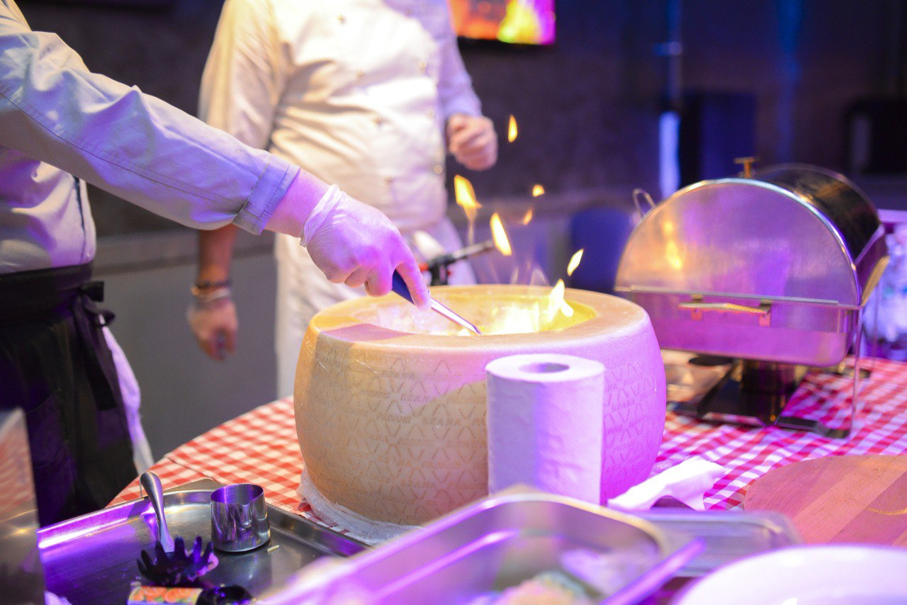 - Меню из трех ресторанов: итальянская, японская, узбекская и грузинская кухни.